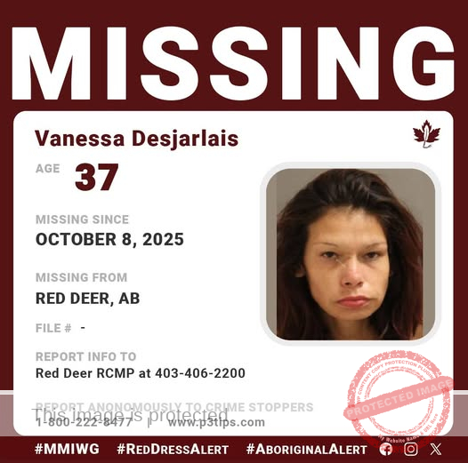 Vanessa Desjarlais was last seen on October 8, 2025, in Red Deer, Alberta. She is described as having brown hair and brown eyes, standing 5’4″ tall and weighing approximately 125 lbs. As of now, there have been no updates regarding her whereabouts.